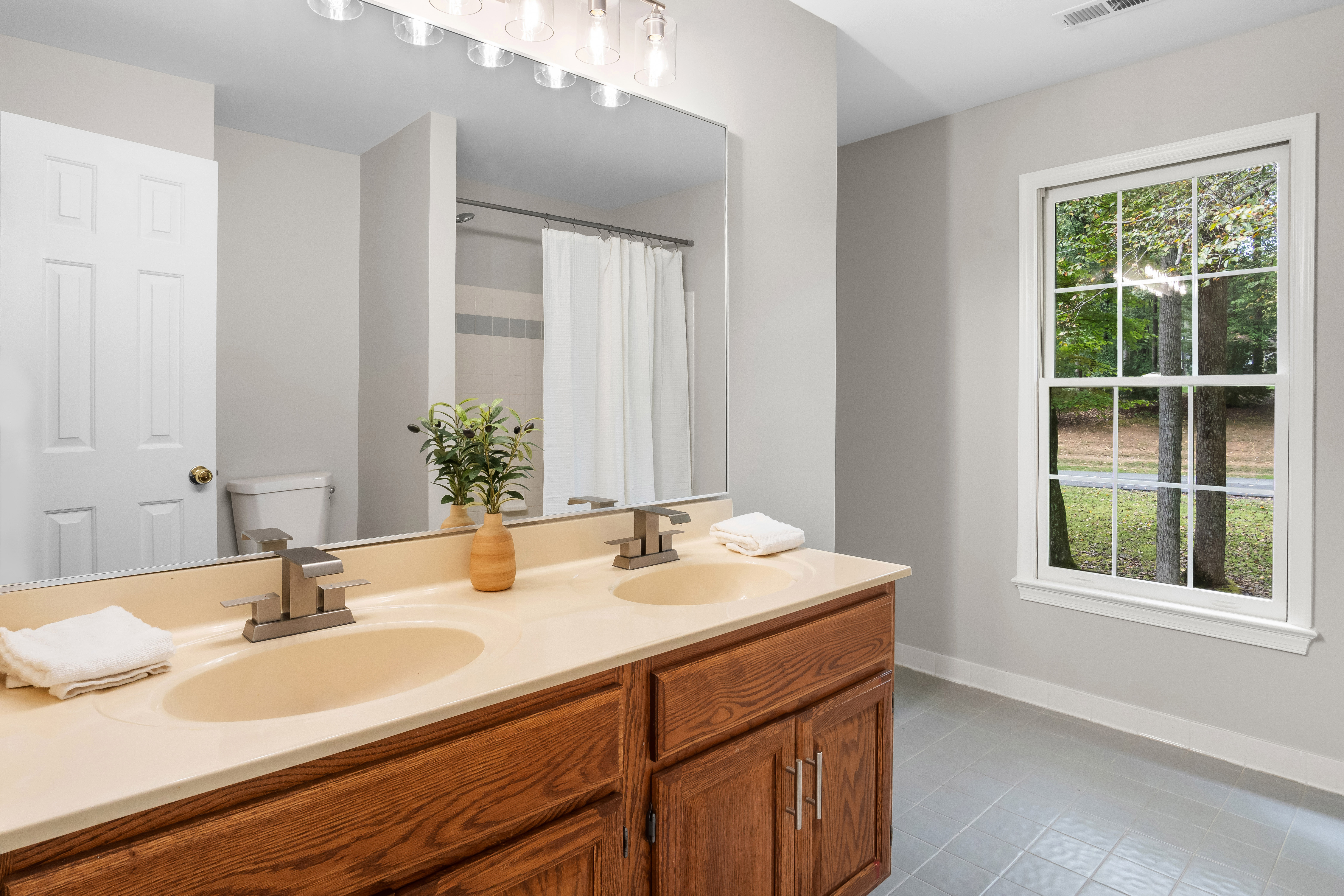 Upstairs, the expansive and luxurious owner’s suite includes separate sitting and dressing areas, creating a true private retreat. The owner's bathroom has a double jacuzzi soaking tub, separate shower, and 2 brand new vanity sinks with new fixtures, lighting and mirrors. The large walk in closet connects to the bathroom and to the dressing area, and has tons of room. 3 additional bedrooms upstairs and 2 more well-appointed bathrooms offer plenty of room for family and guests alike. The upper level has another 5th flex room that could be used as a second office, play room, game room, or study. Each of the large secondary bathrooms have double sink vanities and all bathrooms have updated lighting fixtures. All bedrooms have their own bathrooms, one is a Jack and Jill with the front and rear bedroom and the other has an ensuite bathroom with laundry chute that connects to the laundry room on the main level. All of the bedrooms are generous in size and have huge walk in closets, and new overhead fan light fixtures!