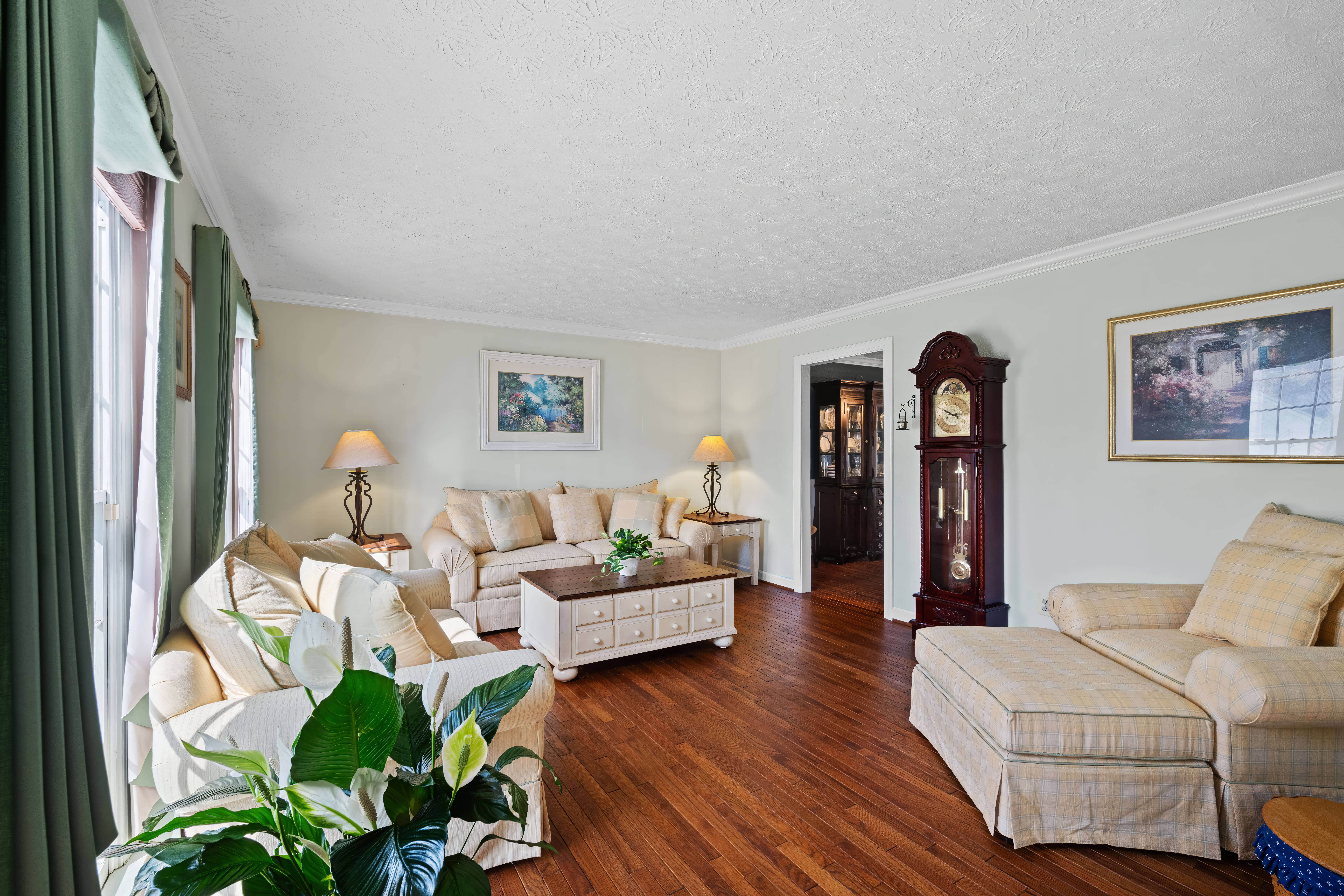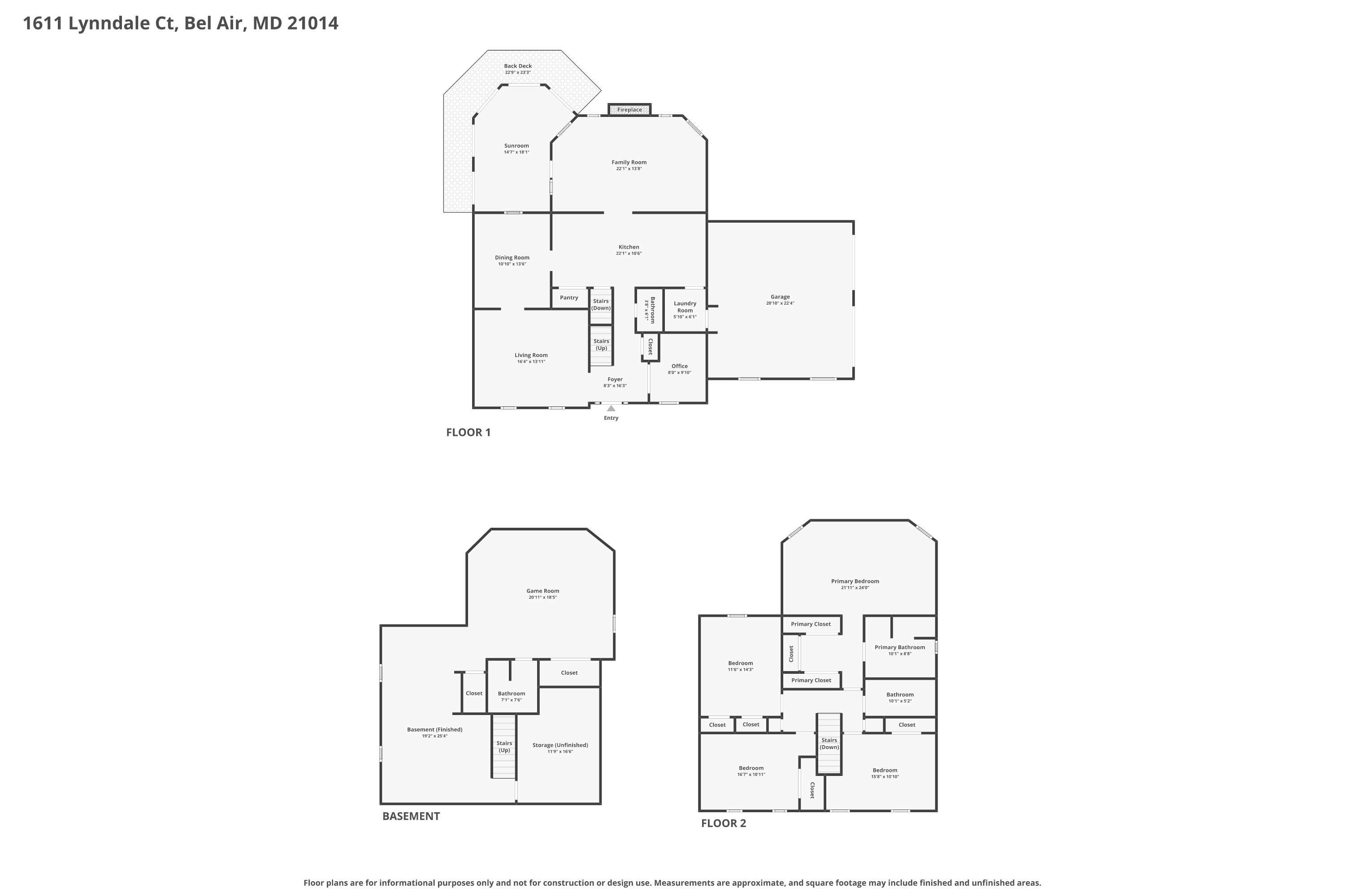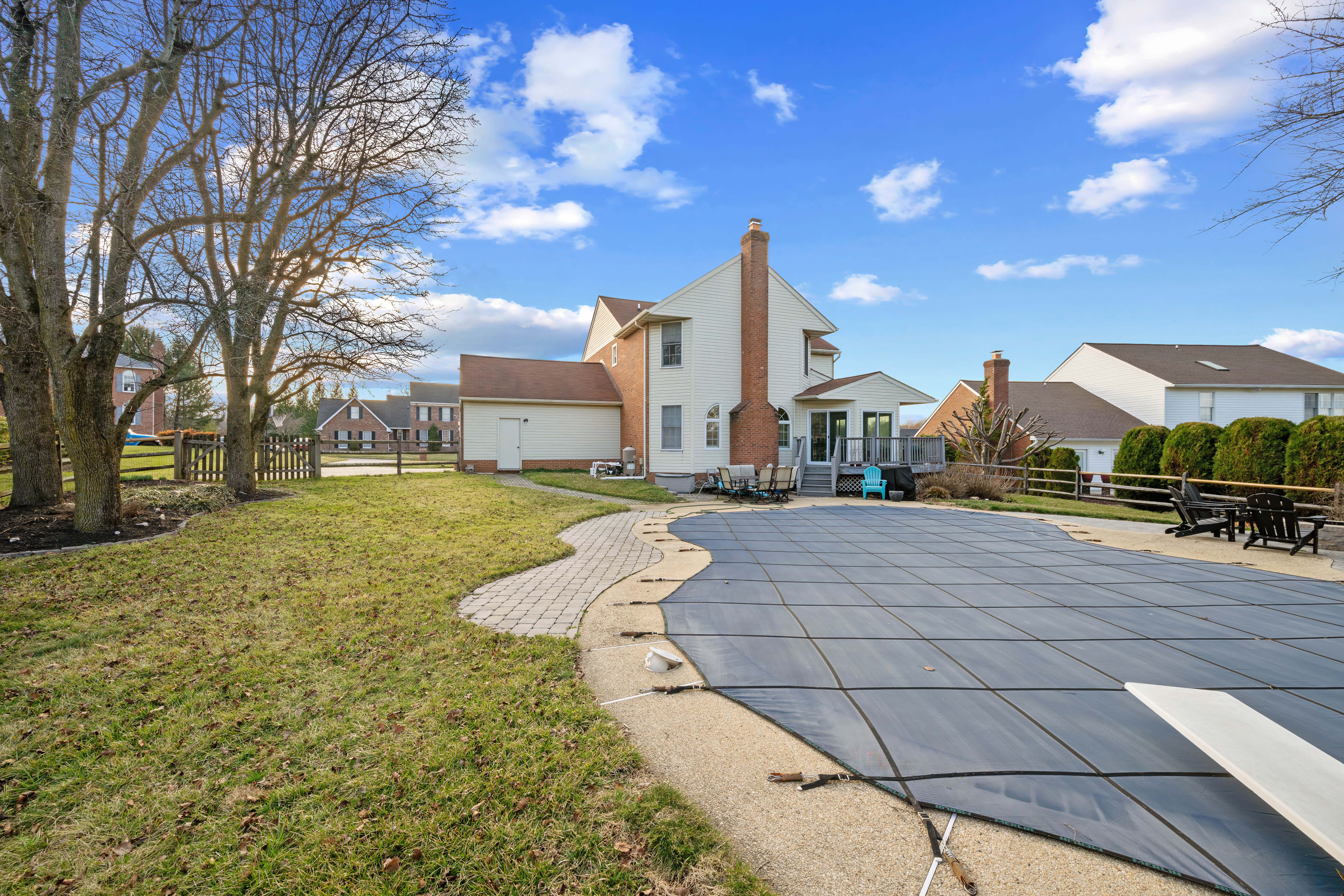 Welcome to 1611 Lynndale Court, situated in the desirable Parsons Ridge Community - zoned for Ring Factory Elementary School, Patterson Mill Middle School, and Patterson Mill High School. This home features an outdoor oasis highlighted by a 32,000-gallon concrete chlorine pool with surface, tile and coping redone in 2021. Inside, you'll find a beautifully renovated kitchen (2023), featuring quartz countertops, stainless steel appliances, backsplash, recessed lighting, and crown molding. The adjoining family room offers a cozy gas fireplace (2024), while a bright sunroom with skylights and multiple exits leads to the fenced rear yard, firepit and pool. Formal living and dining rooms showcase moldings and hardwood floors. A main-level office and powder room complete the first floor. Upstairs, the spacious primary suite has cathedral ceilings, ample closet space/dressing area, and a renovated primary bath with double vanity, soaking tub, and separate shower. Three additional bedrooms and a full hall bath provide plenty of space for family or guests. The finished lower level has a large rec room, wet bar, built-in shelving, full bath, and cedar closet. Other updates include the HVAC and water heater (2021-2022).