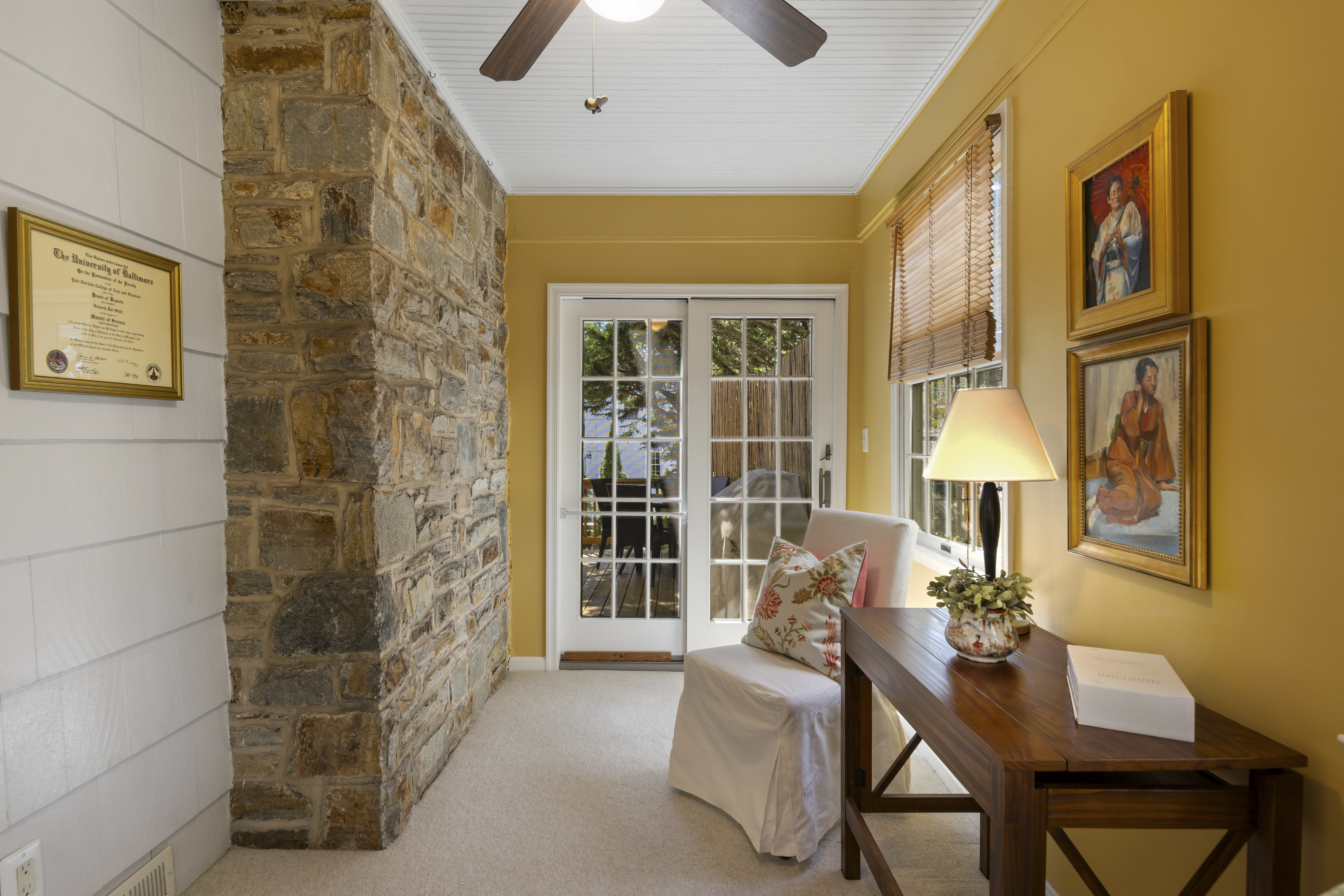 Welcome to this beautifully updated 3-bedroom, 2.5-bath home in the heart of Armagh Village. Featuring refinished hardwood floors (2022–2024), a custom-finished basement with a rec room, built-ins, and storage (2022–2024), a cozy wood-burning fireplace, and a 2-car garage, this move-in ready home is packed with modern upgrades. The solid wood back deck was refinished in 2024 and now includes a brand-new Loane Bros. awning installed in 2025. Major updates include new Marvin and Andersen double-pane windows (2019), a new air conditioning coil and compressor (2020), updated kitchen and baths with new flooring, vanities, and toilets (2022–2024), a full exterior repaint (2021), new oversized gutters (2023), and a new chimney liner, cap, and crown (2025). Roofs on the garage and rear dormers were replaced between 2014 and 2015. Additional features like ceramic tile upgrades, wrought iron stair railings, a custom wood kitchen pocket door, and hardwired smoke and carbon monoxide detectors add character and convenience. Located just minutes from downtown Towson, 695, and 83, Armagh Village offers a close-knit community with an active neighborhood association. Don’t miss your opportunity to own a home that combines historic charm with thoughtful modern updates!