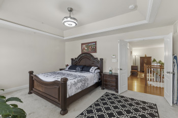 Upstairs, the layout continues to impress with generously sized bedrooms (most can accommodate a king bed) and a convenient laundry area. The expansive primary suite, featuring French doors feels like a true retreat. It includes tray ceiling detailing and luxury ensuite bath with both a soaking tub and a separate shower plus a beautifully upgraded walk-in closet. A sought-after upper-level loft provides the ideal bonus space for a reading lounge, homework zone, home office, or cozy movie spot.