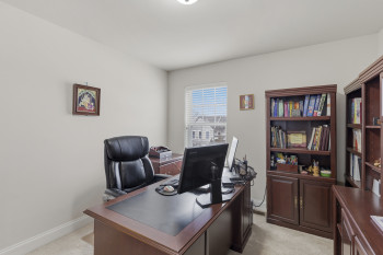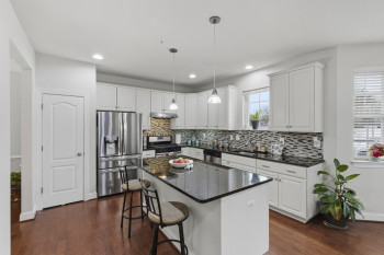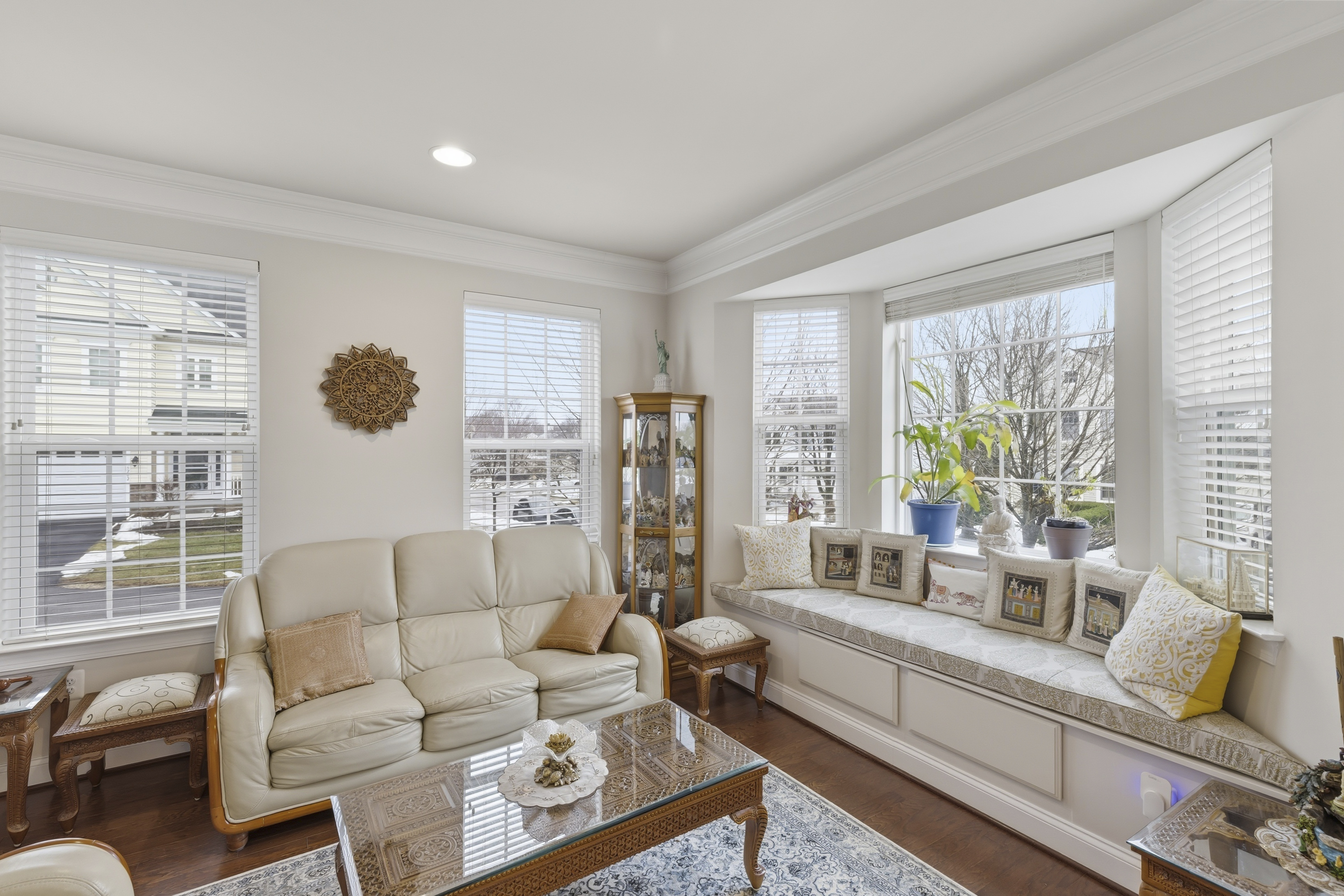 From the moment you enter, the two-story foyer and graceful staircase set an elevated tone, while the home’s 9-foot ceilings on all three levels create a bright and open feel throughout. The main level is designed for both everyday comfort and effortless entertainment, featuring a spacious family room, a well-appointed kitchen with a large center island, a breakfast nook, an under-counter microwave, a pantry and soft-closing cabinets with convenient glide out cabinet trays. Separate living and dining rooms with crown molding provide flexibility for hosting, working from home, or creating a quiet retreat. Thoughtful touches like custom blinds and shutters throughout and a cozy bay-window seat with hidden storage add charm and function you’ll appreciate every day.