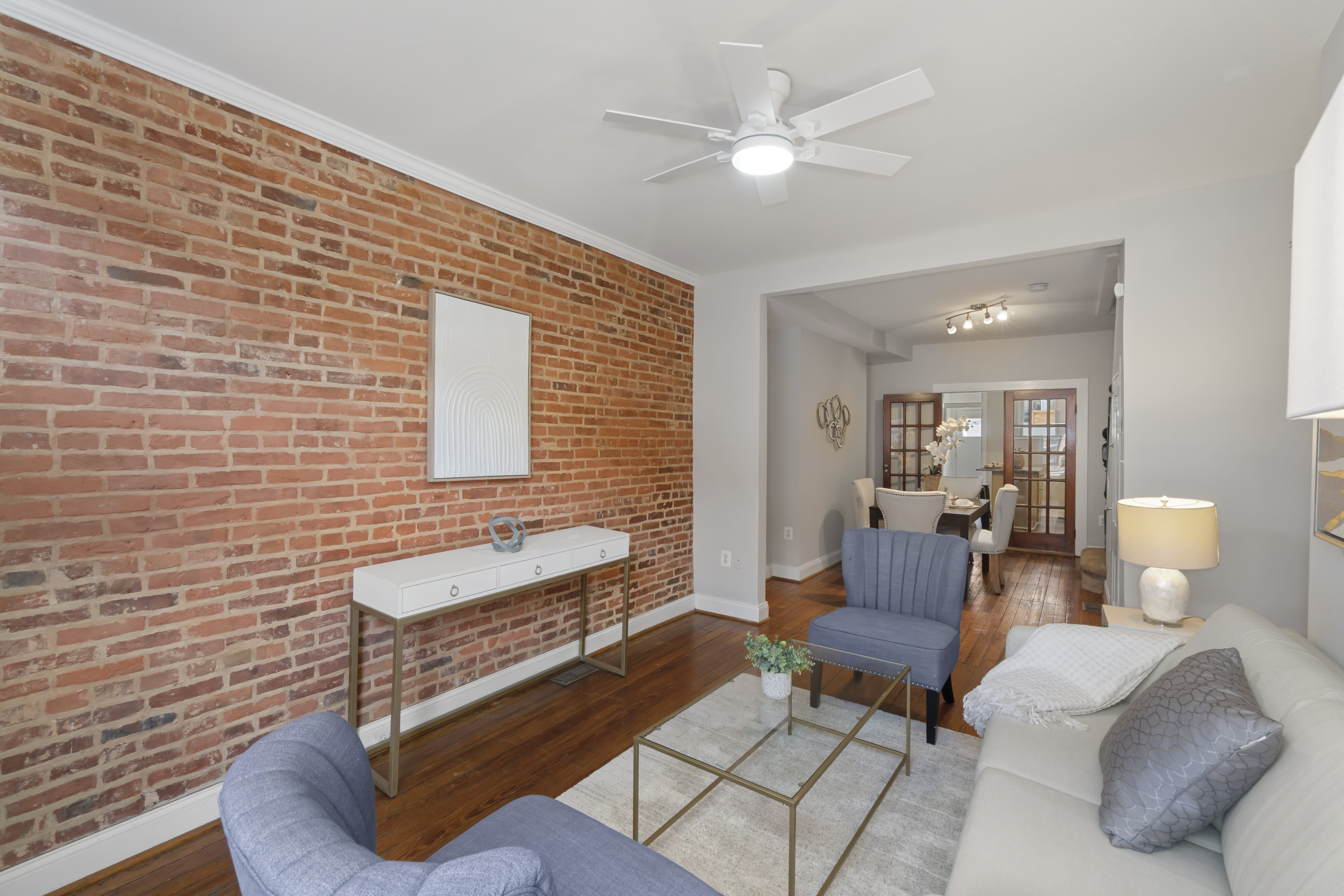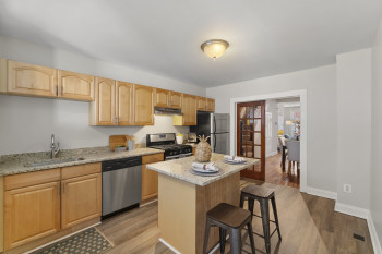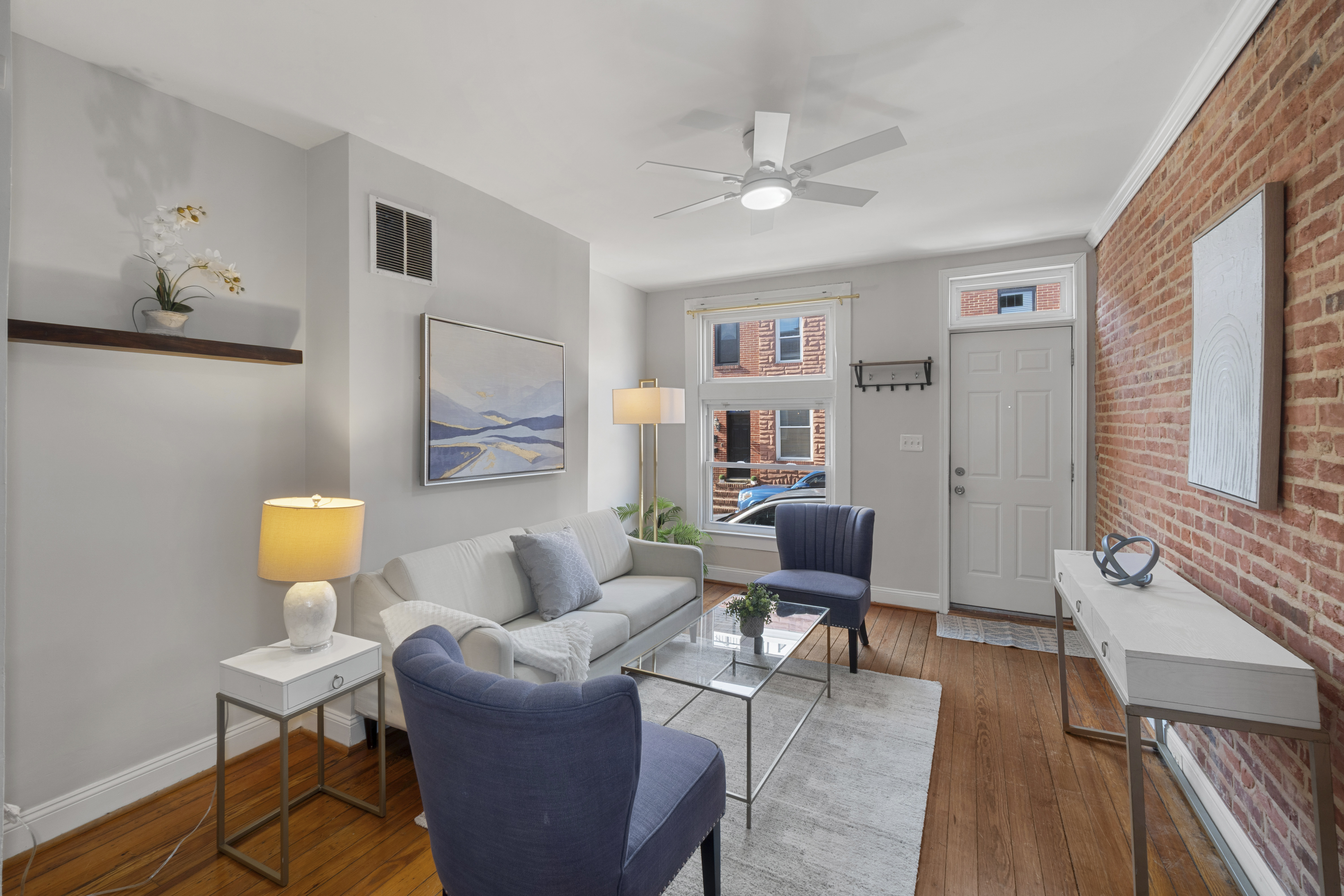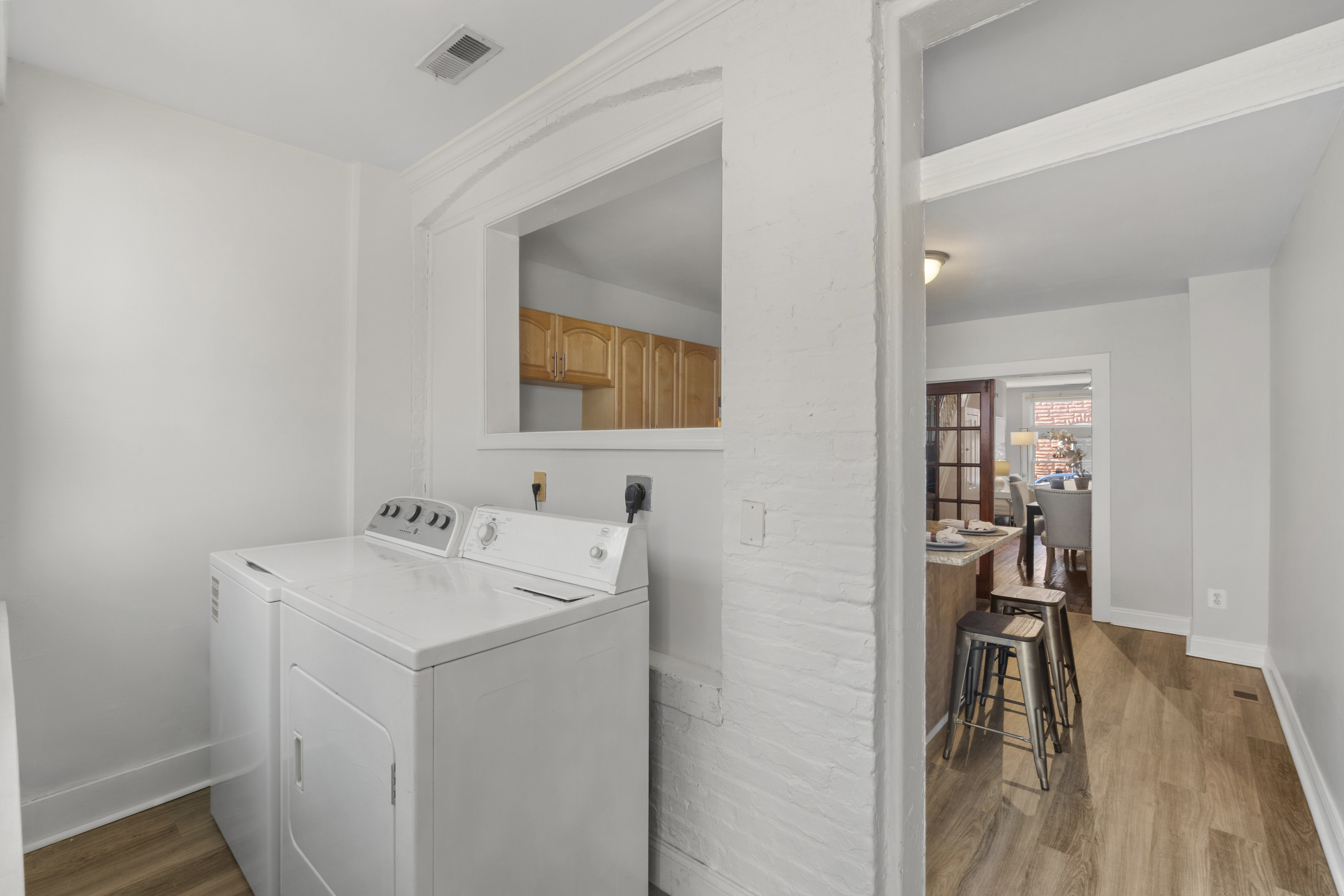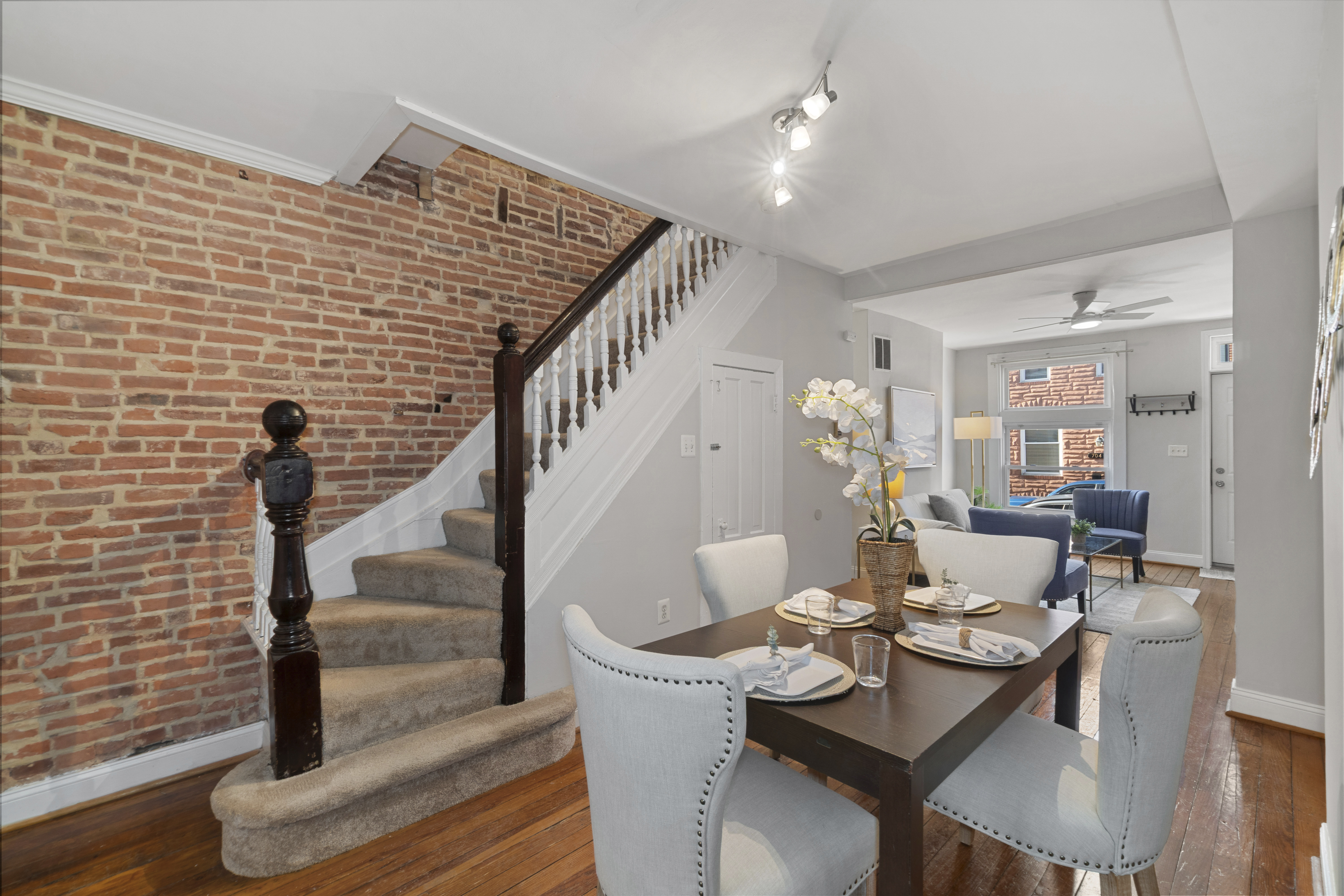 Beautiful 2-bedroom, 2-full-bath Federal-style townhome in the heart of Canton. Conveniently located near shopping, dining, nightlife, Patterson Park, and I-95 access. The main level features hardwood floors in the living and dining rooms, highlighted by a chic exposed brick accent wall that adds classic City character. Durable vinyl plank flooring flows through the kitchen and mudroom laundry area. The kitchen is well-appointed with an island, gas cooking, and stainless steel appliances, making it perfect for everyday living and entertaining.