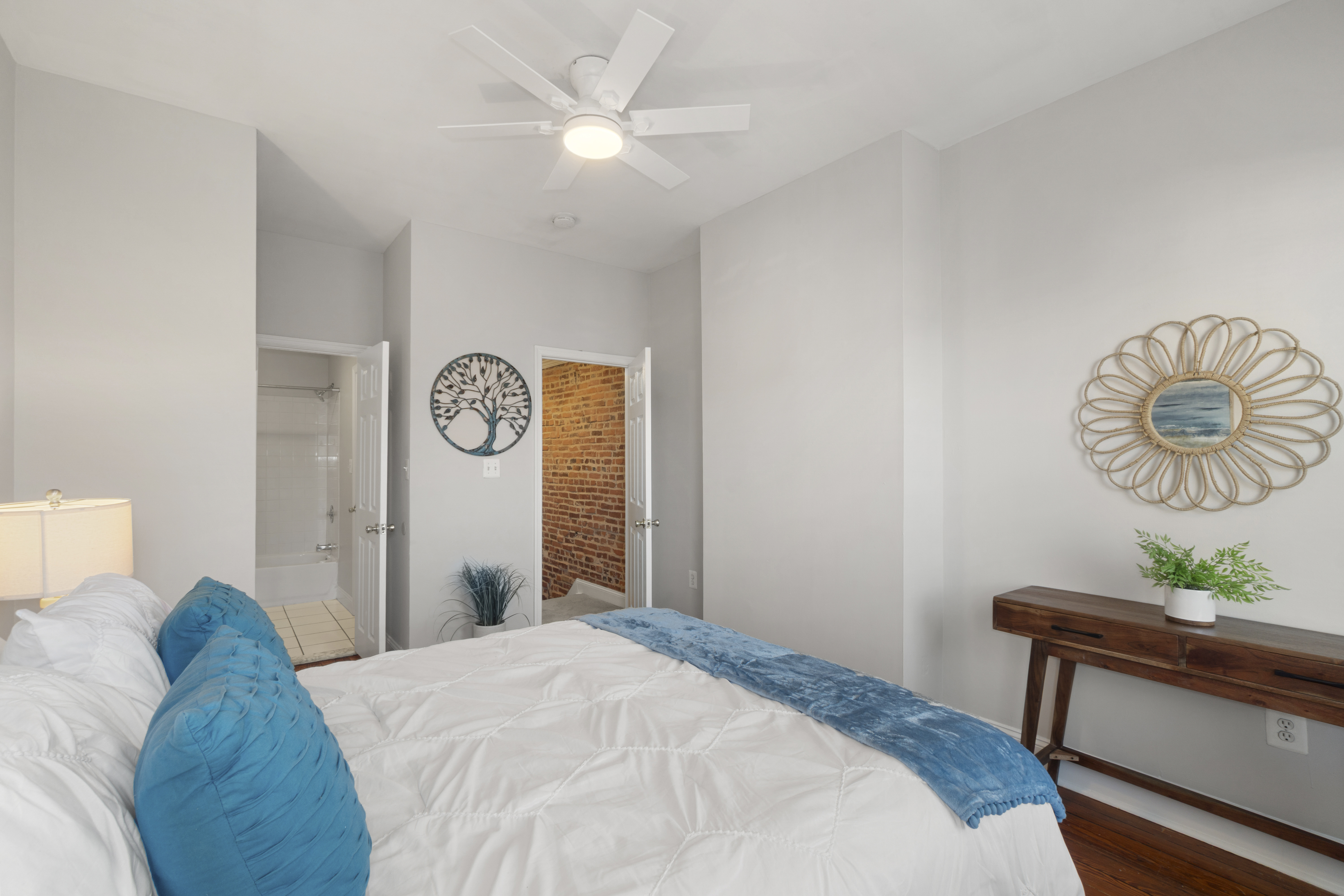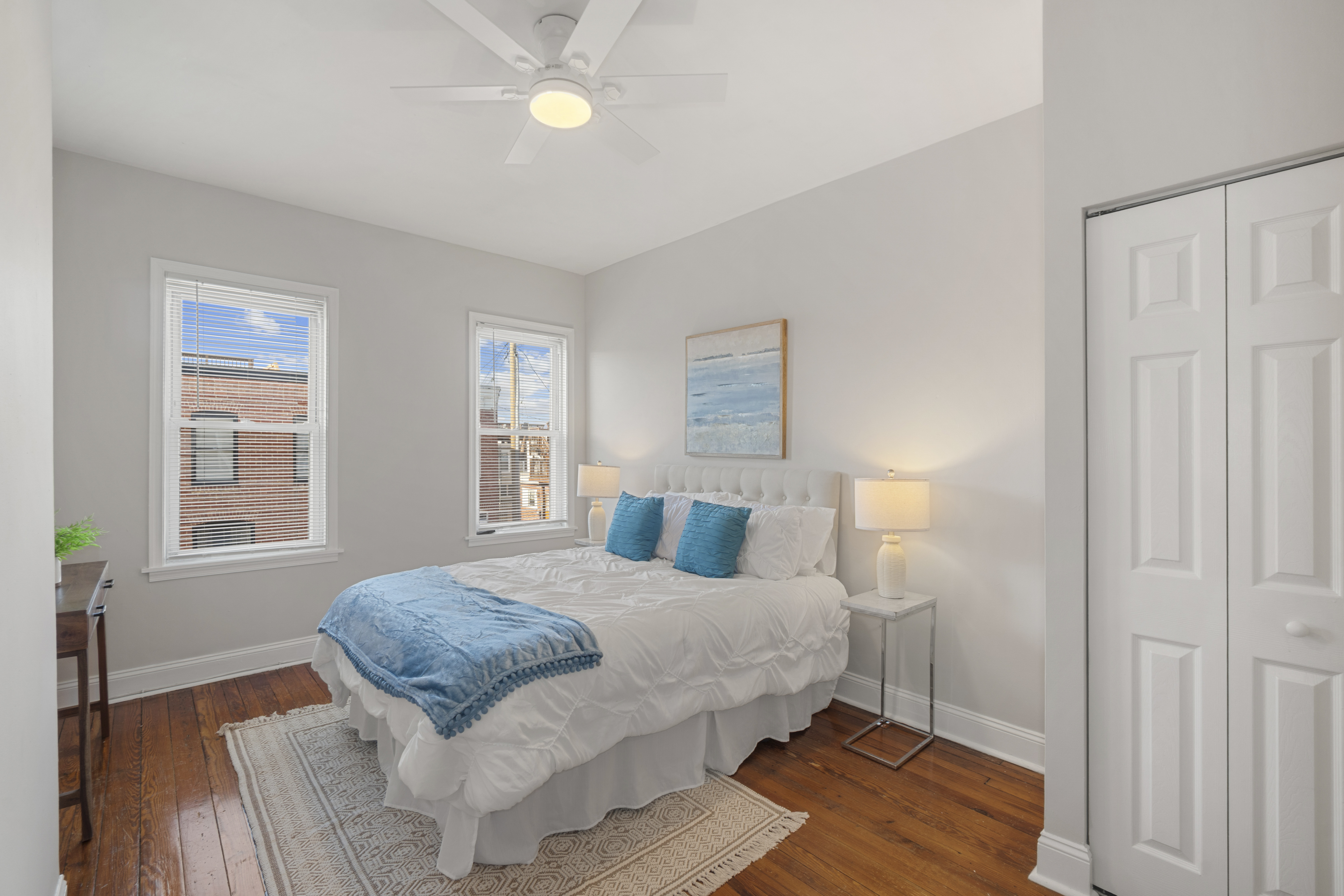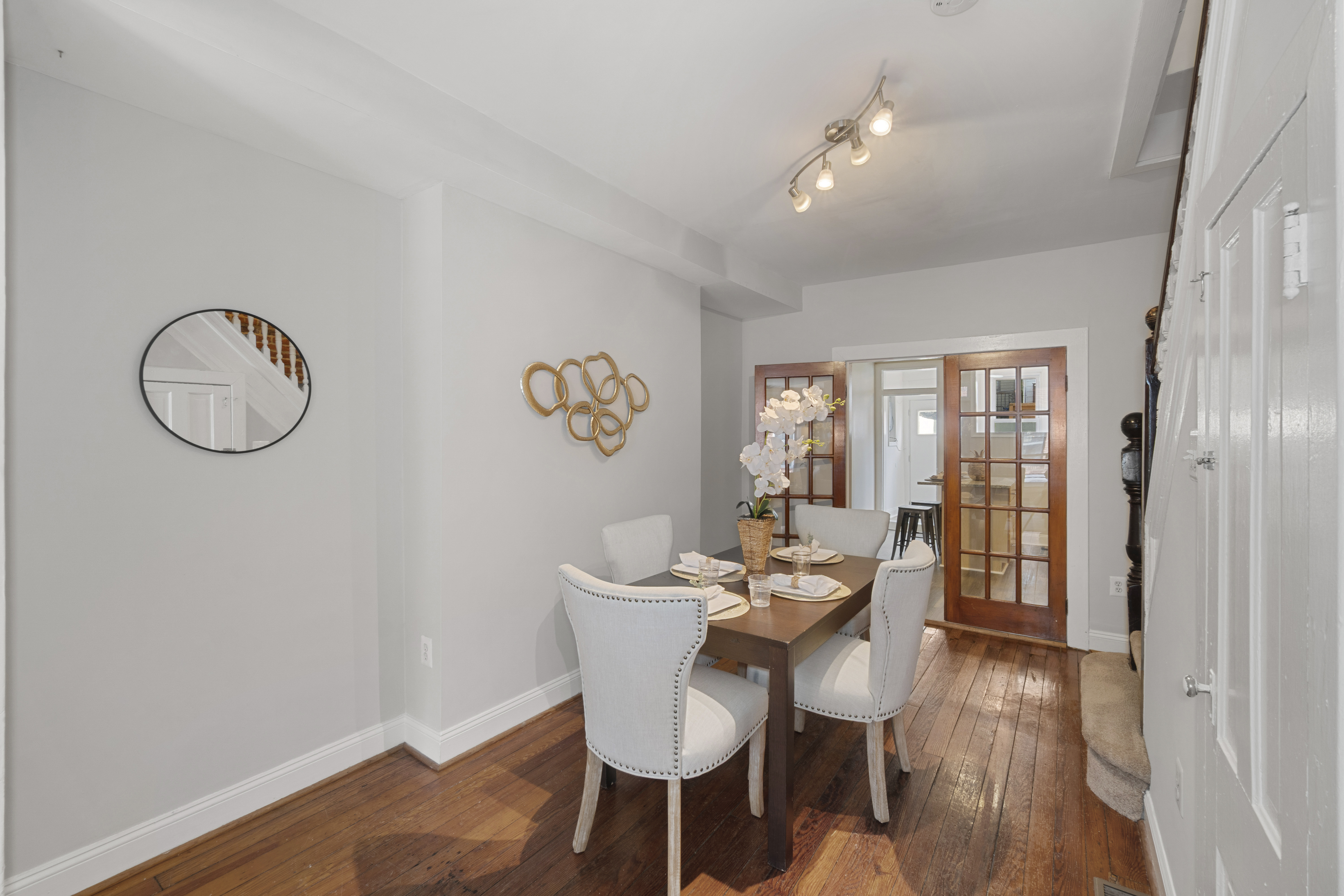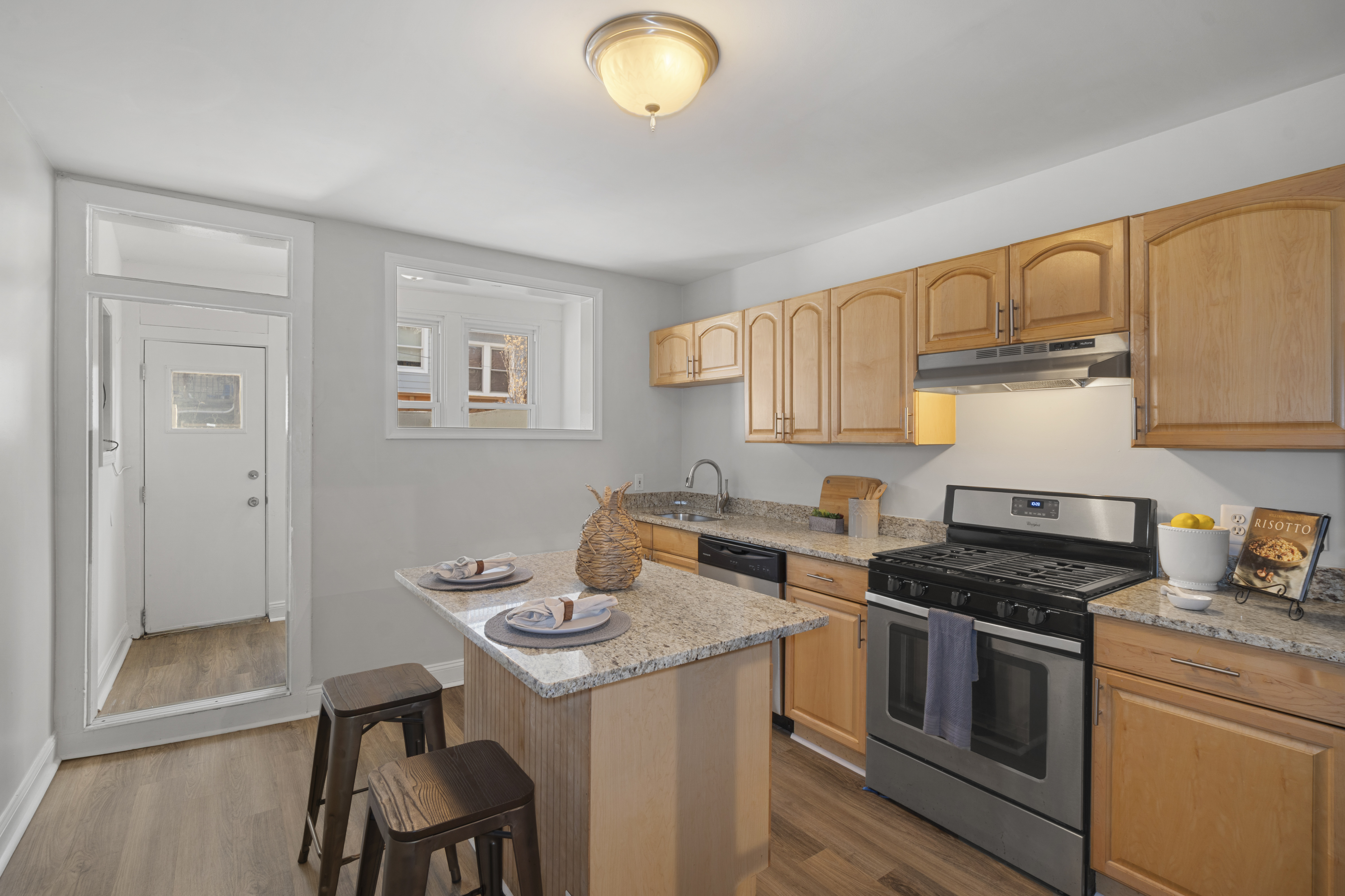 Beautiful 2-bedroom, 2-full-bath Federal-style townhome in the heart of Canton. Conveniently located near shopping, dining, nightlife, Patterson Park, and I-95 access. The main level features hardwood floors in the living and dining rooms, highlighted by a chic exposed brick accent wall that adds classic City character. Durable vinyl plank flooring flows through the kitchen and mudroom laundry area. The kitchen is well-appointed with an island, gas cooking, and stainless steel appliances, making it perfect for everyday living and entertaining.