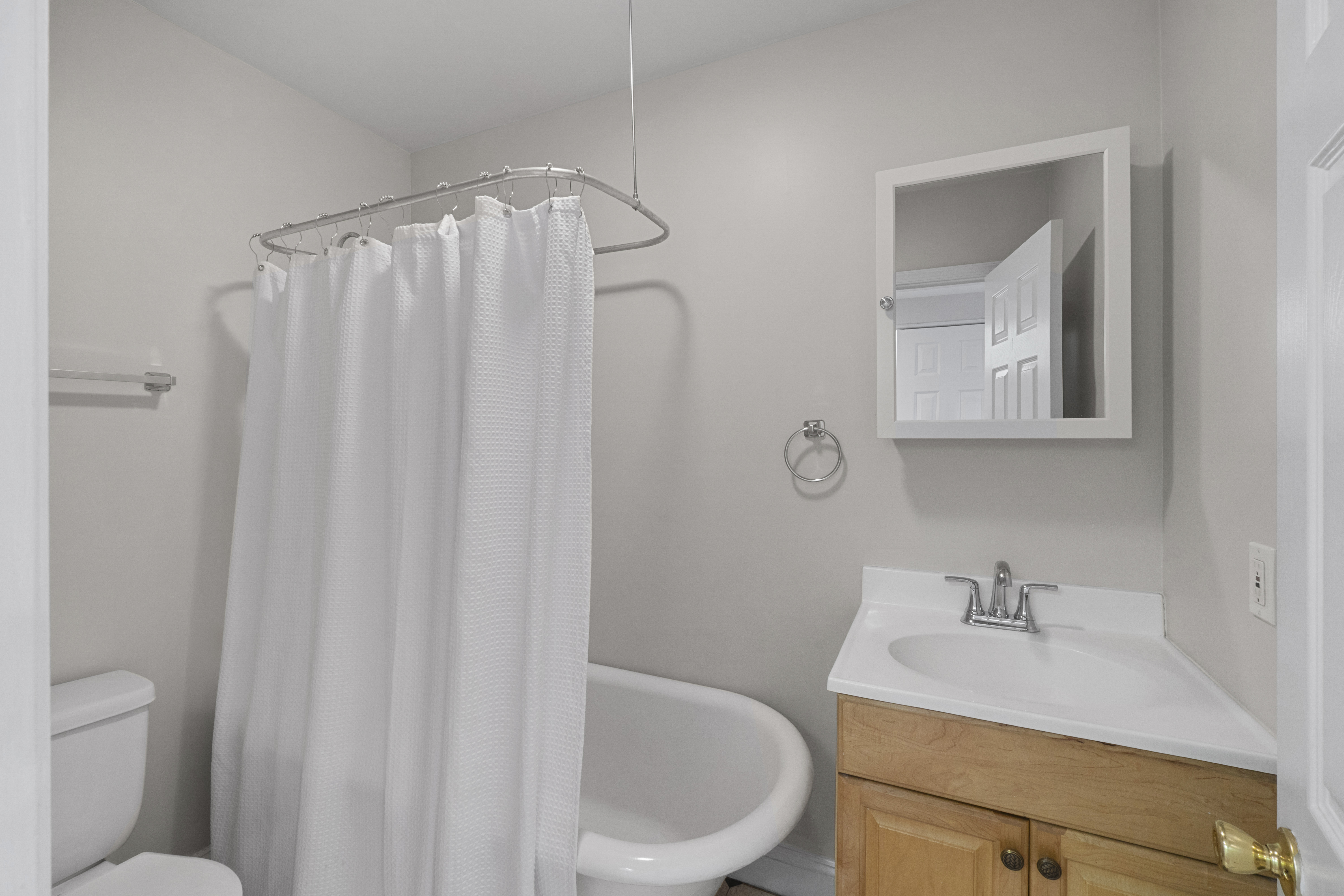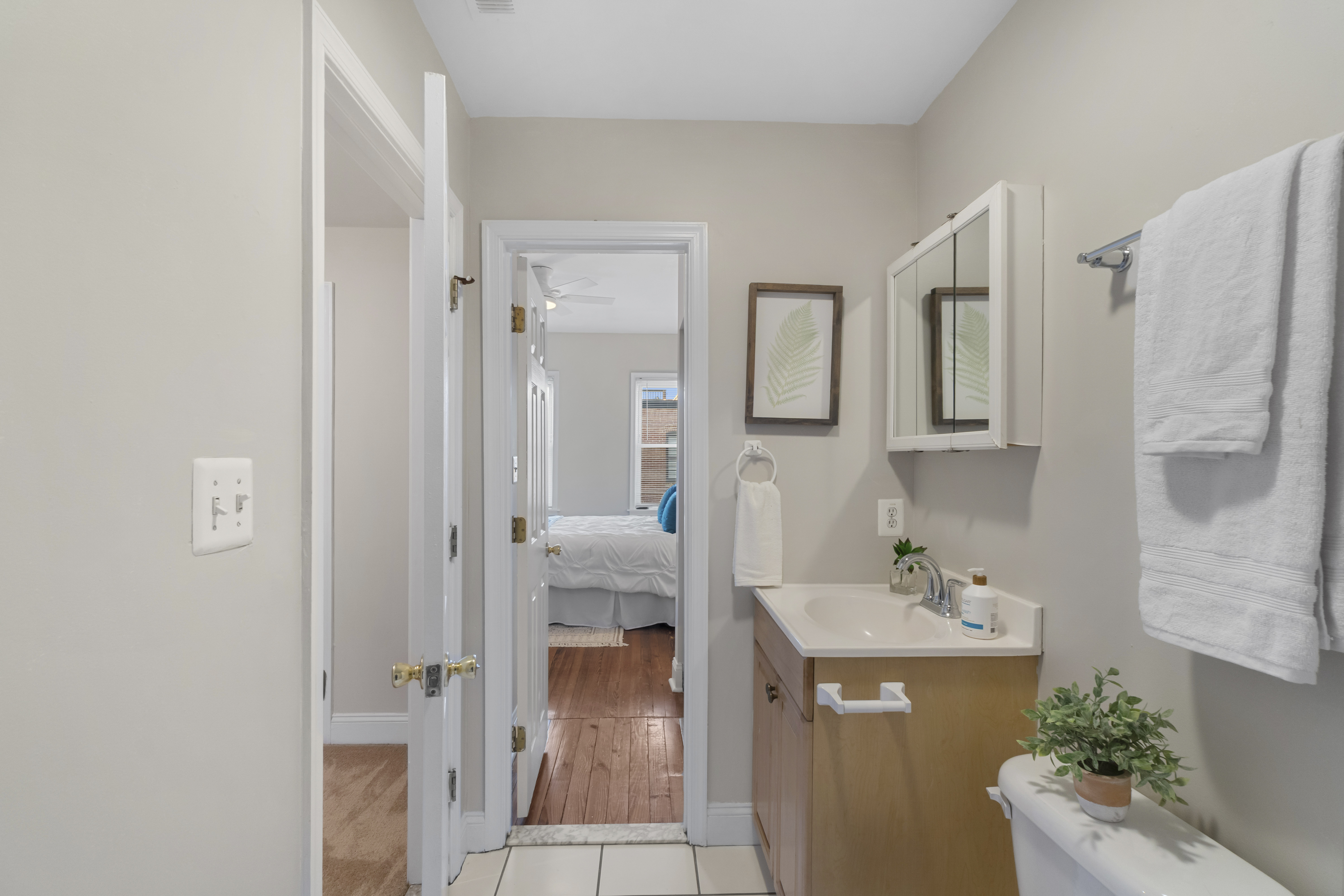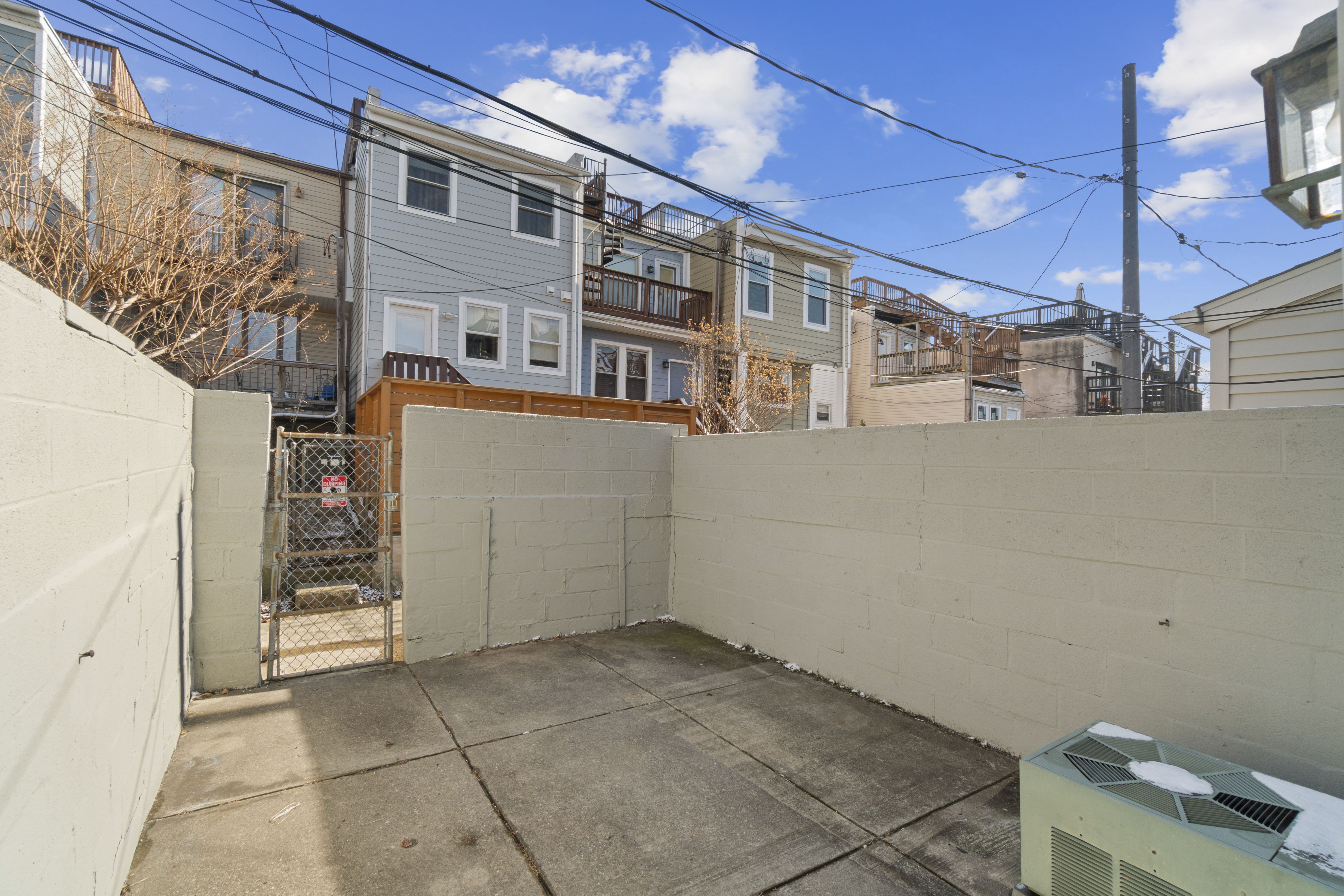 Upstairs offers two spacious bedrooms and two full bathrooms. The unfinished basement provides ample storage and the flexibility to create a home gym, office, studio, or recreation space. Private rear patio enclosed, offers exceptional privacy for city living. This outdoor space is ideal for grilling, crab boils, or creating a planter garden to enjoy warm Canton evenings.
